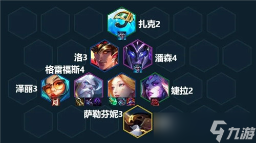 尽快上八,找齐格雷福斯+潘森+巴德/索拉卡/亚索阵容就基本成型,多的格子正常情况下是上巴德开3秘术,给全队加回蓝还能提供Aoe控制和来高费卡几率;亚索则和潘森开2狂刃战士适合在装备溢出的情况下选择补充输出;索拉卡给阵容提供稳定回复更肉,都没有就上第二张男枪补点伤害。在8级卡利息把阵容整体搜到2星、萨勒芬妮3星后就可以考虑上九找任意2星橙卡补充阵容上限,也可以在八级搜3星婕拉、潘森、男枪,装备对了甚至可以挂2星敖兴,根据转职、装备和海克斯的适配性灵活变阵!