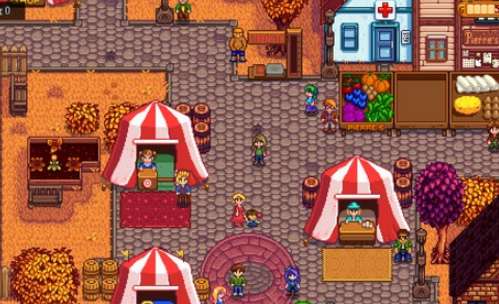 首先就是星露谷的展览会,举行的场地就在城镇,要带好钱在这个聚会里参加小游戏,在里面参加小游戏然后可以兑换到游戏币,然后就可以使用游戏币兑换我们喜欢的物品,首先我们来到活动区域,不过我们最先要将自己的摊位布置好并且与镇长对话让他跟我们评估,然后他会通过你的展评来给你进行奖励,不过你在这之前将镇长的内裤给他,他就会偷偷的给你奖励,我们拿出我们最珍稀的物品得到第一名然后记得走的时候收回自己的展品,然后我们就可以拿着这些游戏币来玩游戏赢得更多的货币,推荐大家玩赚钱搏一搏等钱不多了就去玩其他的赚钱然后去转盘,然后我们就可以在里面通过小游戏赚取货币换取物品等我们玩的换的差不多就可以回家结束聚会了。然后就是万圣节,万圣节是在晚上的镇里举行的,这里面主要是要通过一个迷宫,这是没有什么难度的我们主要时拿到金南瓜然后回去售卖,然后在小摊上购买自己的想要的装饰和种子就可以回家了。