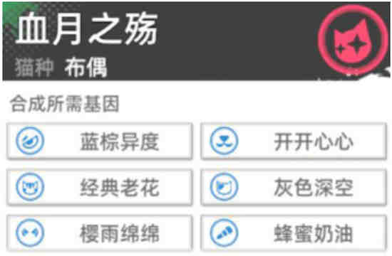 猫之城血月之殇怎么合成?猫之城是一款非常火热的角色扮演游戏,游戏中你将在赛博朋克风格的世界中与可爱的拟人化的猫咪角色们一同战斗,丰富的猫咪角色都任你收集,她们有着不同的外形以及迥异的性格,可以尽情满足你的收集欲,同时你还能和她们进行有趣的互动,在互动中解锁许多有趣的剧情,体验不一样的乐趣,而血月之殇是一类非常有趣的毛球,它独特的造型非常的新颖,给人眼前一亮的感觉,培育出不同的猫球需要相应的基因,合适的基因搭配才能培育出你想要的猫球,那么血月之殇要怎么合成,需要哪些基因呢,下面由小编来为你揭晓。