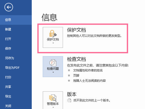 word文档添加密码教程1、打开word文档,点击左上角的文件,点击信息,点击保护文档。