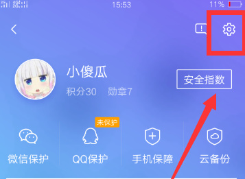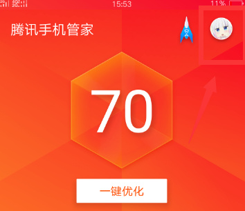 然后进入腾讯手机管家的页面,点击页面右上角的“头像”。