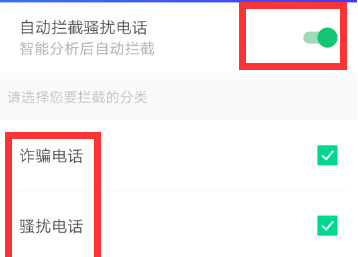 点击“打开”自动拦截骚扰电话。