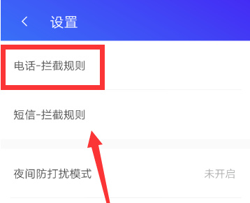 [设置]页面,然后单击“电话拦截规则”。