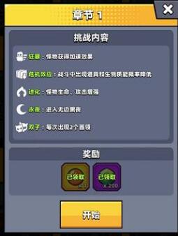 2、挑战:一个章节可获的400绿宝石,没通过一关主线关卡,开启一个章节