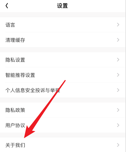 第四步:进入到设置页面后,找到【关于我们】按钮。