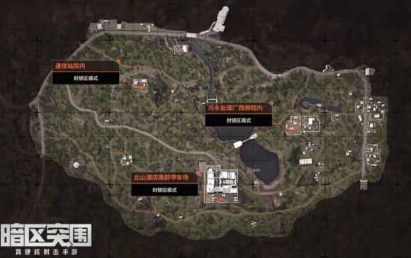 北山:普通模式的北山地图没有空投罐,封锁区模式中则有三个,分别位于通信站院内、北山酒店南部停车场以及污水处理厂西侧院内。