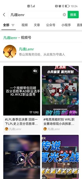 1、玩家需要打开微信,在这里搜索凡魂lemr,然后即可看到这个视频号。
