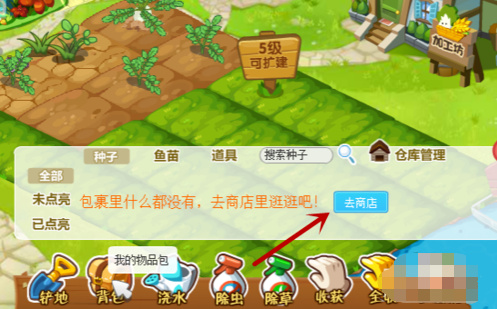 之后,我们点击我们的背包。如果没有种子,我们可以用金币购买,如图。