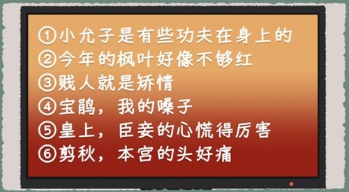 1、关卡开始后先打开电视机,然后电视机会开始播放甄嬛传,这个时候需要玩家根据播放的图片来猜台词。