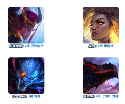 黯灵龙:战斗开始时,黯灵龙格中的弈子被献祭,将其身上的随机装备复制给所有黯灵龙英雄,并提供生命值加成,随羁绊阶数(2/4/6/8)提高。