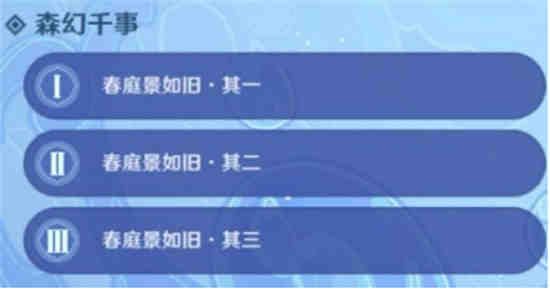 首先是森幻千事,此为先前主线任务的三个秘境,主要供未拿全秘境宝箱的旅行者们再次挑战。在每一个秘境的界面中都可以查询到尚未发现的宝箱数量和尚未发现的【海螺】数量哦。