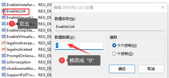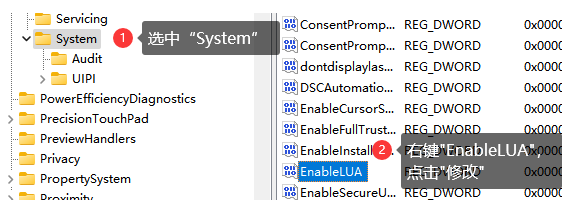 在下面的目录,依次打开目录,并找到EnableLUA文件。