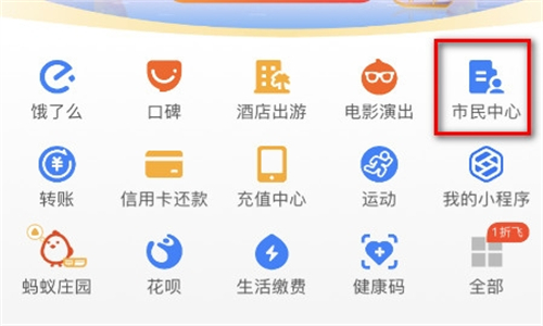 【1】首先需要用户登录支付宝客户端,在首页的应用页面选择“市民中心”;