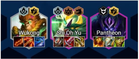在开局悟空多就可考虑这套阵容,不升级人口,建议连败开局。如果比较胡4人口也可连胜。打工阵容建议3玉龙+2狂刃。装备上优先合成悟空的鬼索。