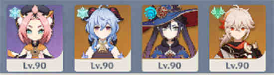 这里的纯色是指三种同一元素角色加上万叶的配队,具体的比如