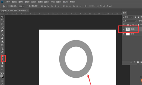 1.首先,在ps软件中新建空白画布后,点击自定义形状工具,绘制圆环图形