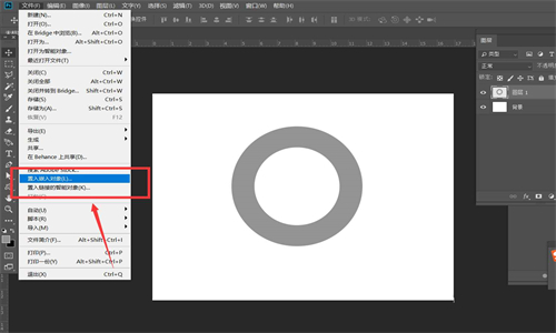 2.随后,点击文件菜单下的置入嵌入对象按钮,导入彩色涂鸦图片进行图层覆盖