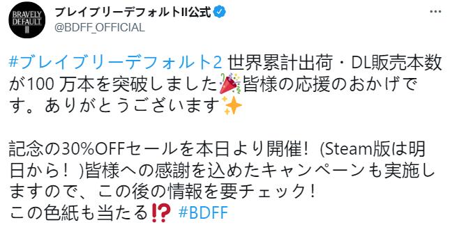 《勇气默示录2》正式宣布全球累计出货量和数字销量已突破100万,同时官方还放出了一张100万销量的纪念插画。