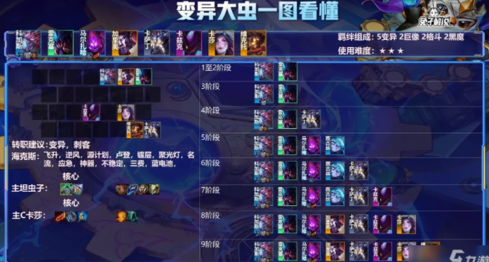 6人口开始大搜,目标就是2星虫子,有转职的前提下可以开出5变异,稳定锁血,没有变异转职拼纳尔/黑魔均可。