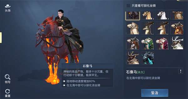 三、极度稀有坐骑1、魅影马 推荐度:非常推荐 稀有度:非常稀有 捕捉竞争力:热门坐骑,竞争力很大 刷新时间:8个小时 捕捉条件:需要探险等级到达二十七级,在驯化技能中投入十二个技能点达到十级。 捕捉地点:探险点北大西洋北部。 2、石像马 推荐度:非常推荐 稀有度:非常稀有 捕捉竞争力:热门坐骑,竞争力很大 刷新时间:8个小时 捕捉条件:需要探险等级到达九级,在驯化技能中投入五个技能点达到五级。 捕捉地点:探险点北海中部 3、巨龟 推荐度:非常推荐 稀有度:非常稀捕捉竞争力:热门坐骑,竞争力很大 捕捉方法:通 钓鱼系统才小概率获得 捕捉条件:在探险中使用钓鱼系统,尽量选择在“鱼群聚集”的港口钓鱼,可增加获取巨龟的概率。 捕捉地点:北大西洋东岸、黑海、南美东岸 4、大寄居蟹 推荐度:非常推荐 稀有度:非常稀有 捕捉竞争力:热门坐骑,竞争力很大 捕捉方法:通过钓鱼系统才小概率获得 捕捉条件:在探险中使用钓鱼系统,尽量选择在“鱼群聚集”的港口钓鱼,可增加获取大寄居蟹的概率。 捕捉地点:非洲西部、非洲东部、加勒比海