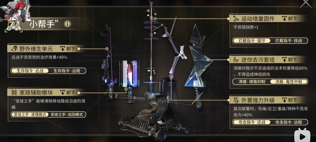 摆放顺序和方向:煌(←),推进之王(↓),星熊(←),蜜莓(←),拉普兰德(←),塞雷娅(→)。等星熊有地板后再放推车(如图)