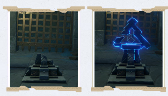 在渊下宫,还有着这种三角的机关。它是一种能在一定距离内可以通过攻击来激活的机关。- 定时间后,该机关会重置。如果发现有的机关破损了,不妨在「常夜」状态再看看。它们会将自己补全。