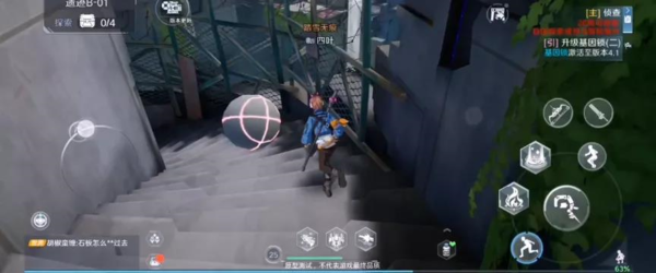 1、进入到副本后我们处在一片台阶的上方,正前方是一个红色表示的圆球,根据提示我们需要把圆球向前滚动来进行解密,滚动时需要始终按下按键,因此每次滚球都要判断好周围的安全程度,小心被敌人偷袭。