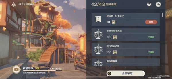 1、完成【身后事·诸事平安】后的下一天凌晨四点会自动接取任务,这次完成任务会获得150经验、30000摩拉和3本经验书